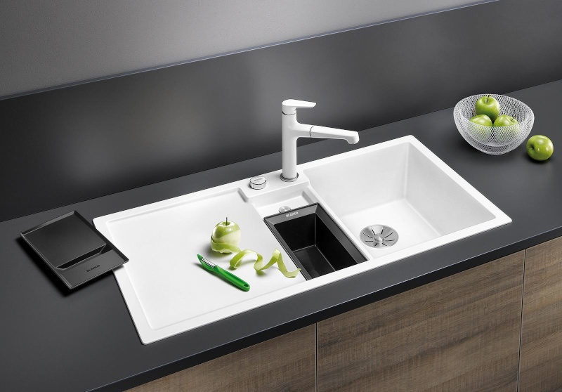 Blanco Collectis 6 S – практичная функциональная мойка с глубокой чашей и системой сбора пищевых отходов. Большая раковина для кухни из материала Silgranit с четкими линиями и удобным разделением отходов - Blanco Collectis предлагает вам новую концепцию для оптимальной организации приготовления пищи. Мойка оснащена дополнительной компактной чашей глубиной 14 см. в центре, в нее идеально помещается входящий в комплект переносной контейнер с крышкой. Это позволяет во время приготовления быстро собирать отходы, накрывать их и временно хранить до тех пор, пока они не будут утилизированы. В сочетании с системой сортировки отходов Blanco Select и Blanco Flexon II эта мойка становится уникальным практичным кухонным помощником. Сортировочный контейнер Collectis идеально совмещается с любой из этих мусорных систем с ведрами объемом 15 или 30 литров. Еще одним преимуществом мойки Blanco Collectis 6 S является дополнительный слив (глубина 26 мм.), который доступен даже тогда когда обе чаши заняты. Эта гранитная мойка продумана до мелочей: основная чаша оборудована современной отводной арматурой InFino и элегантным и гигиеничным переливом C-overflow.